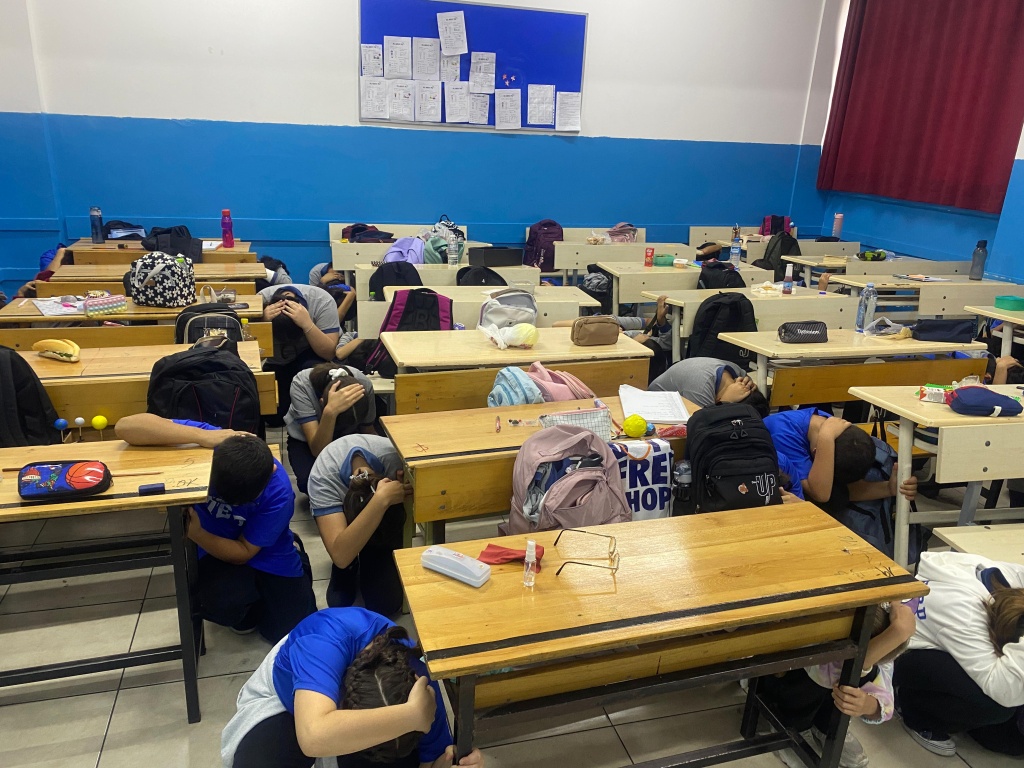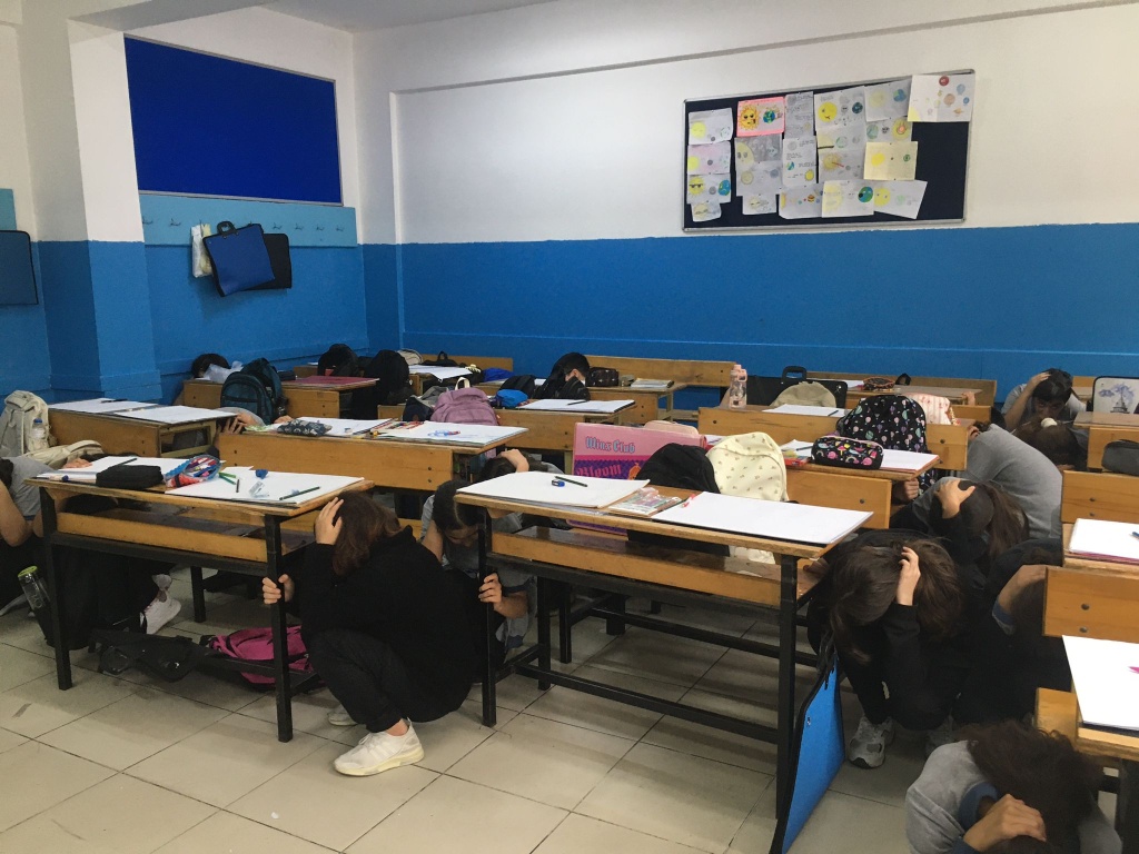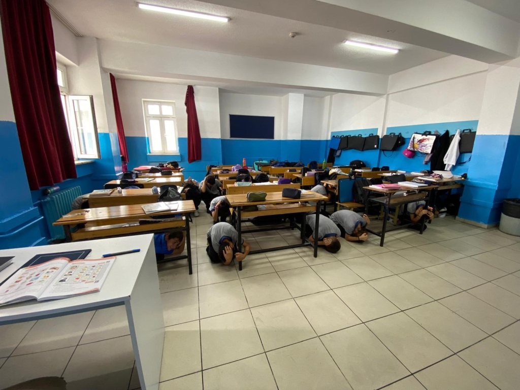 Tatbikatta öğrencilerimiz, olası bir deprem anında nasıl davranmaları gerektiğini uygulamalı olarak öğrendiler.