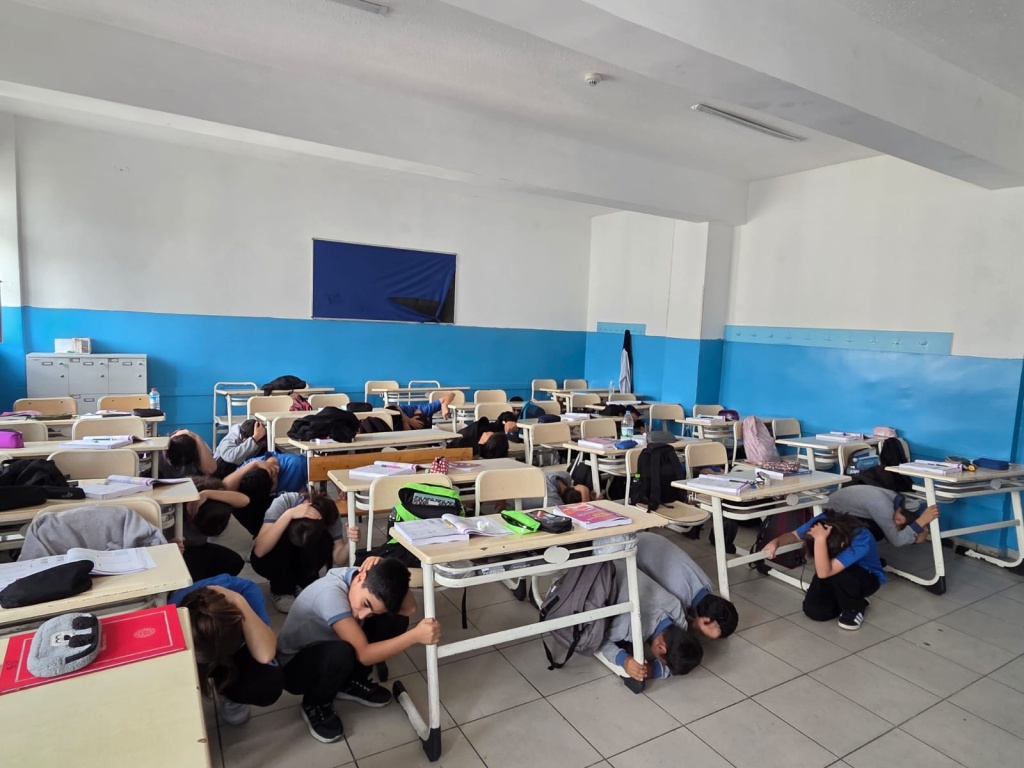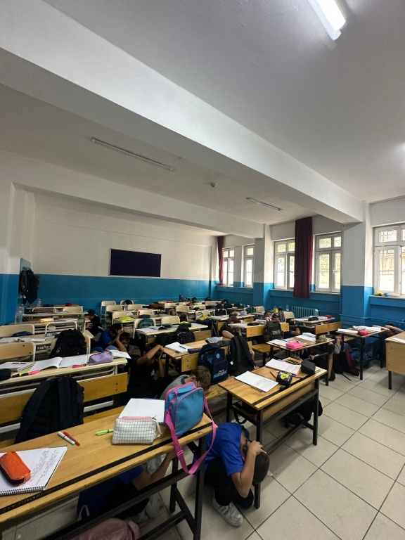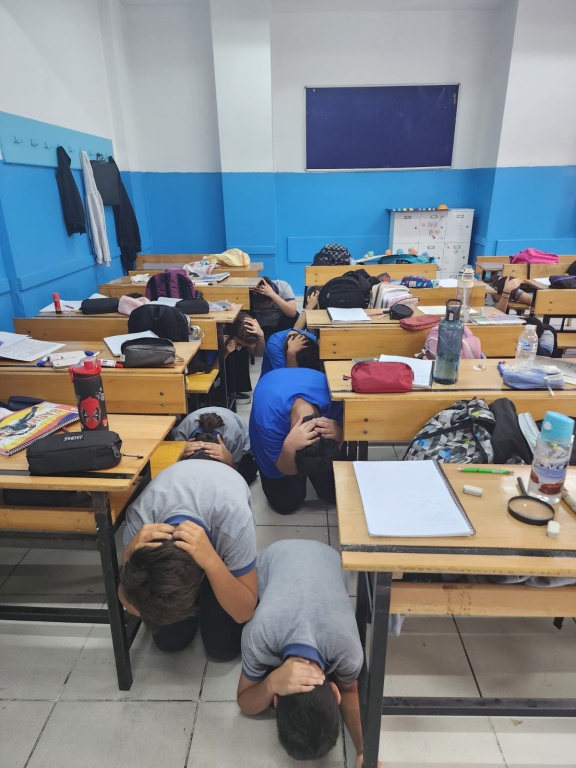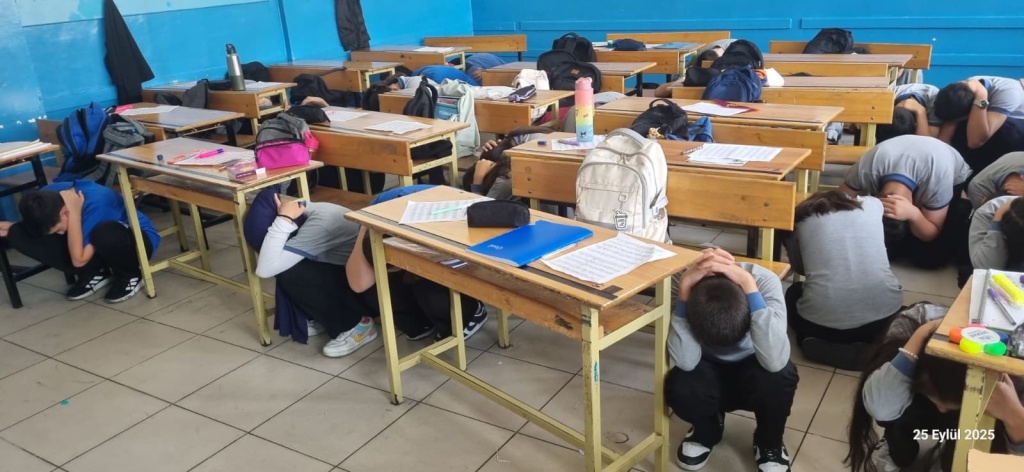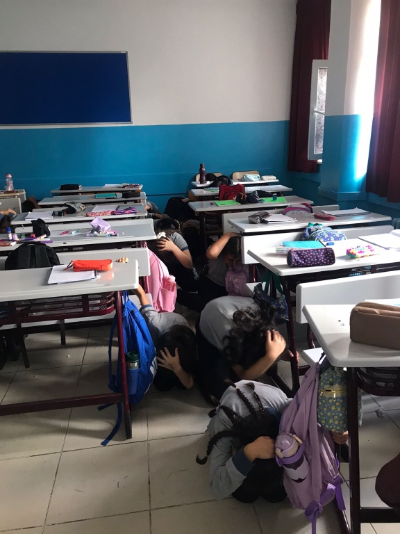 Okulumuzda öğrencilerimizle birlikte "Çök-Kapan-Tutun" deprem tatbikatı gerçekleştirdik.